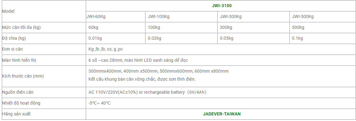Cân bàn điện tử 300kg JADEVER JWI-3100
