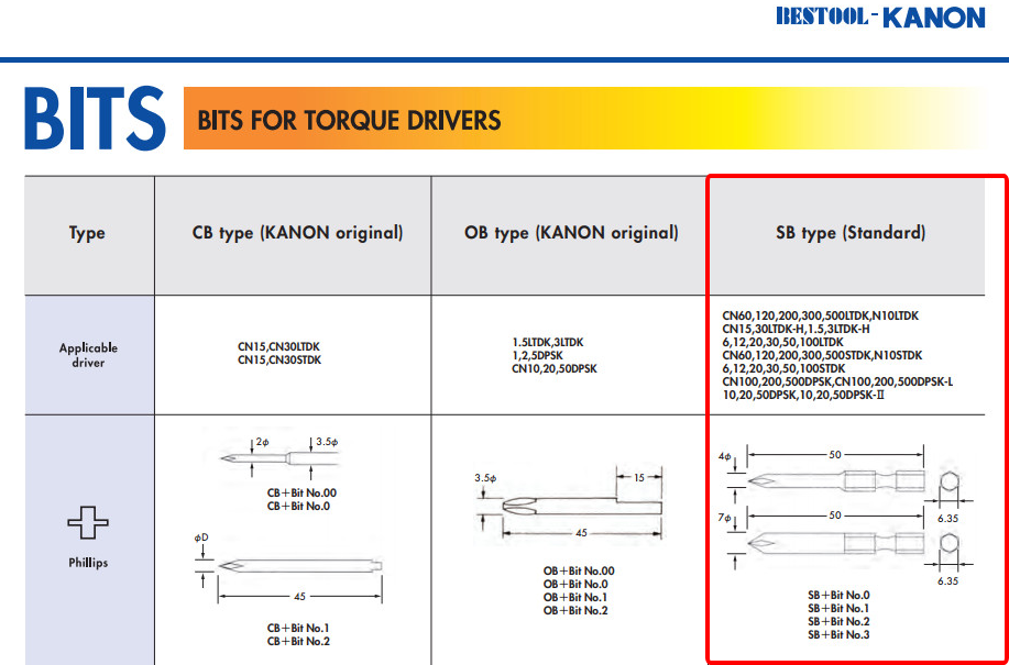 Đầu tua vít 3 ke Kanon SB Bit No 3 ,đường kính mũi vít ϕ7, dùng cho tua vít lực