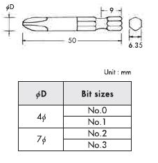 Đầu tua vít 3 ke kanon sb bit no 3 ,đường kính mũi vít ϕ7, dùng cho tua vít lực