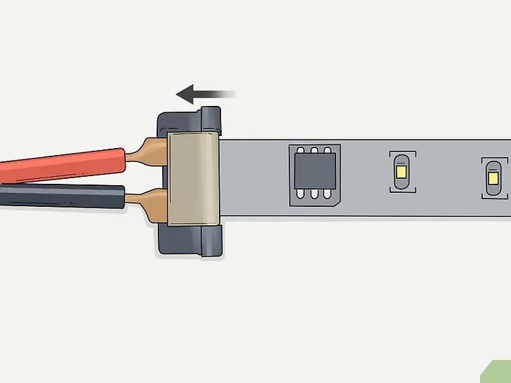 5. Đóng thanh nhựa trên đầu nối nhanh. Kéo thanh màu đen về phía dây đèn LED để cố định kết nối. Đèn LED sẽ không rơi khỏi đầu nối khi bạn thả tay ra. Cách đấu nối này cũng hạn chế tác động cho mối nối.