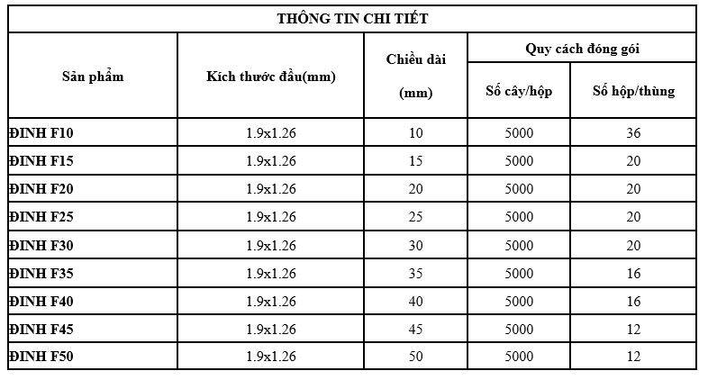 Đinh F (Đinh thẳng) là dòng sản phẩm sử dụng súng bắn đinh dùng hơi, thường được dùng trong các ngành sản xuất nội thất, trang trí, ô tô, gỗ, cơ khí… Các sản phẩm phổ biến trong dòng sản phẩm này là Đinh F10, Đinh F15, Đinh F20, Đinh F25, Đinh F30, Đinh F40, Đinh F50…