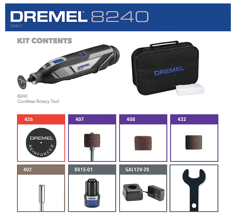 Bộ công cụ quay không dây Dremel 8240 12V với tốc độ thay đổi và tay cầm thoải mái
