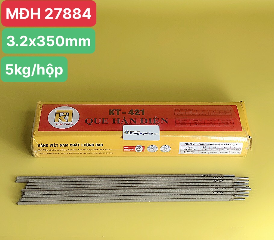 - Kim tín KT-421 là que hàn carbon thấp phù hợp dùng cho mối hàn thép Carbon và thép hợp kim thấp có kết cấu tải trọng trung bình như: kết cấu nhà xưởng công nghiệp, chi tiết máy, lan can, cửa sắt, ….