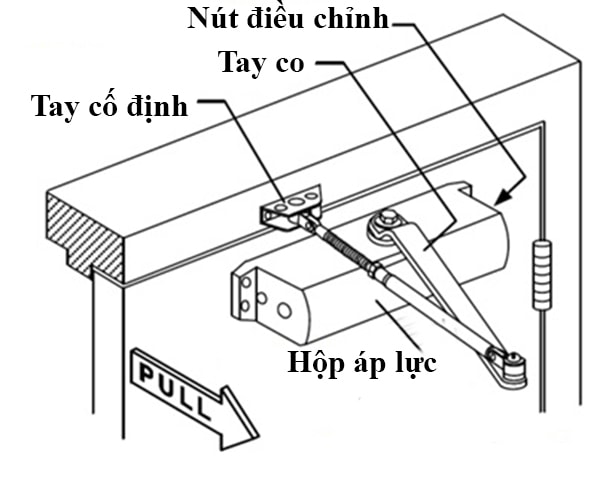- Cửa quá nhẹ, dưới 25kg không nên lắp tay co. Tránh hỏng cửa.