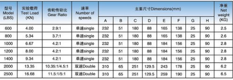 – Tải trọng của tời quay tay: 500LB, 800LB, 1000LB, 1200LB, 1600LB, 2000LB, 2500LB (đơn vị LB “Ponld” là tải trọng tính theo đơn vị đo lường của Anh Mỹ, thường đọc là “PAO” và 1lb = 0.454kg )