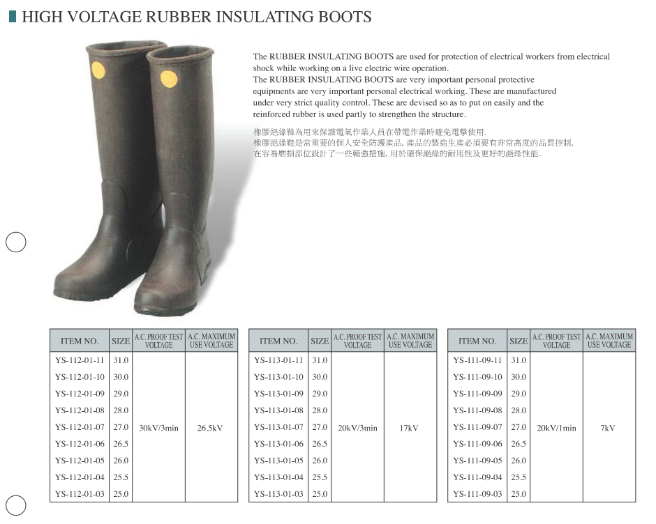 Ủng cách điện Yotsugi YS113-01-07, điện áp làm việc 17kV - size 27