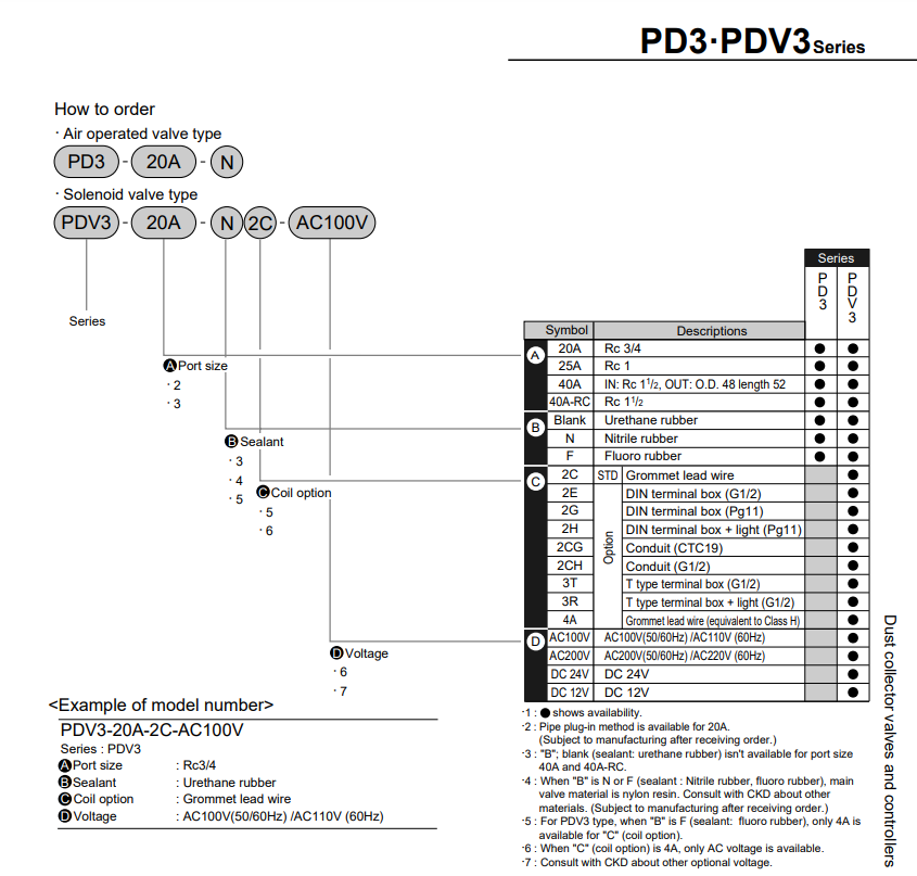 Van điện từ CKD PDV3-20A-2H-AC100V, kích thước cổng RC3/4